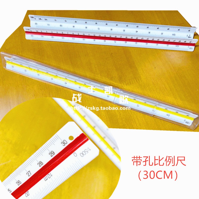 带孔比例尺30CM比例尺图上作业比例尺含1:100和1:500