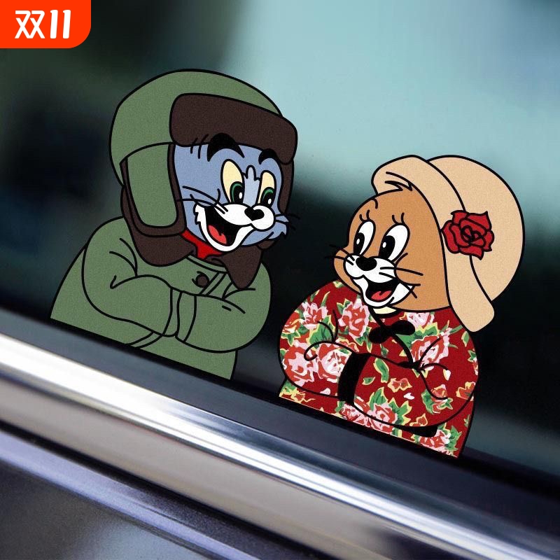 汽车贴纸汤姆和杰瑞个性化创意贴纸卡通可爱画痕覆盖米奇身体防水