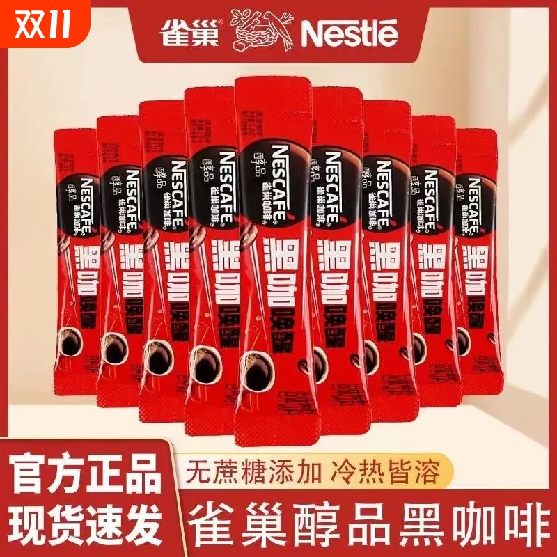 雀巢黑咖啡醇品袋装深烘深黑可调冰美式速溶咖啡粉健身提神苦咖啡