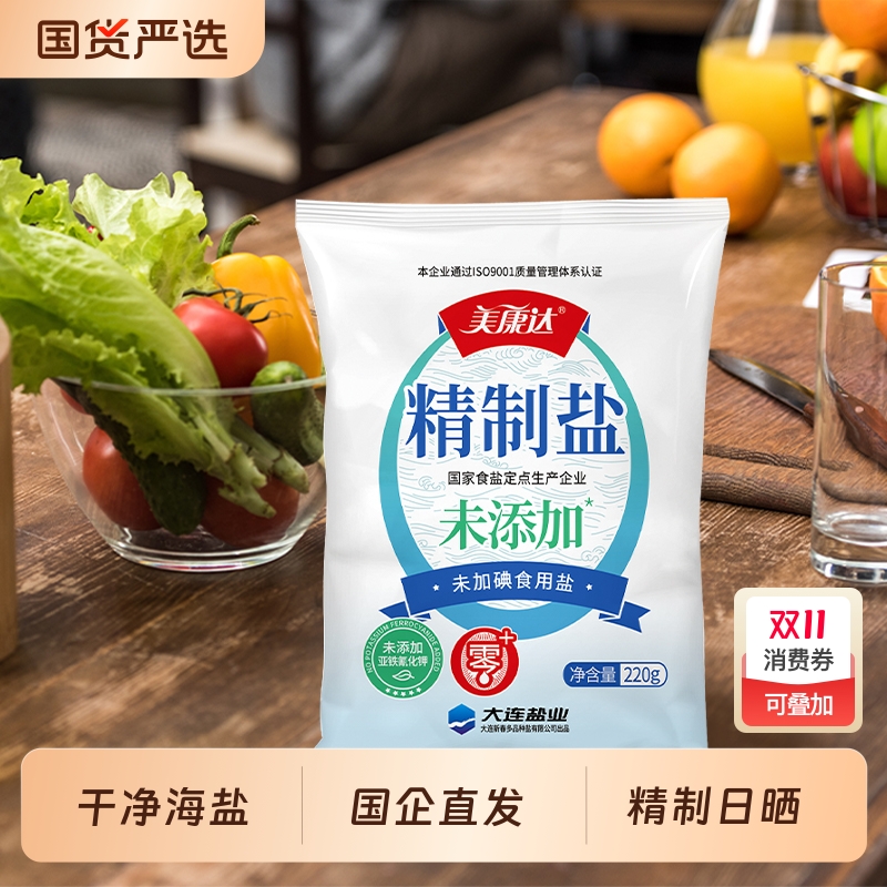 美康达精制盐220g未加碘食用盐炒菜腌制煲汤下酱