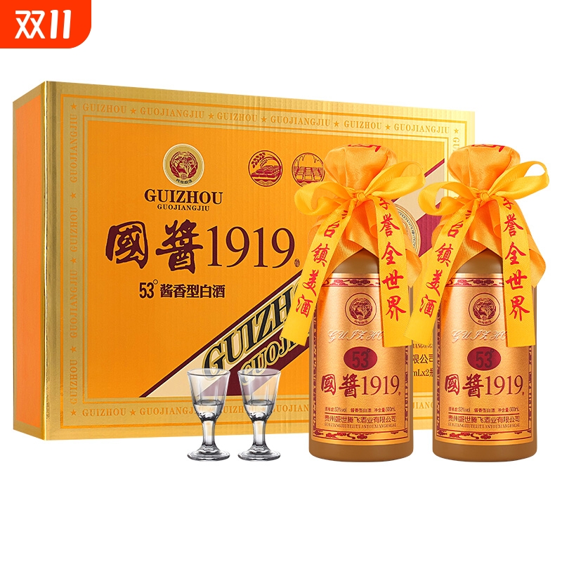 国酱白酒酱香型53度500ml*2瓶纯粮酒纯粮食酒送人送礼收藏摆