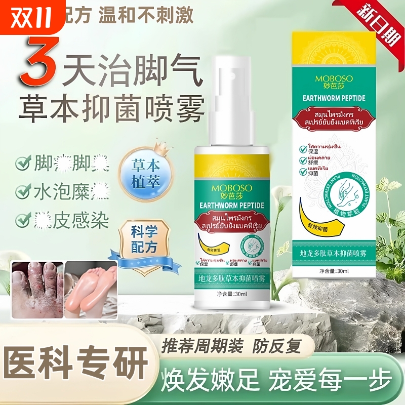 地龙多肽草本喷雾手足脱皮脚臭足部护理剂旗舰店正品