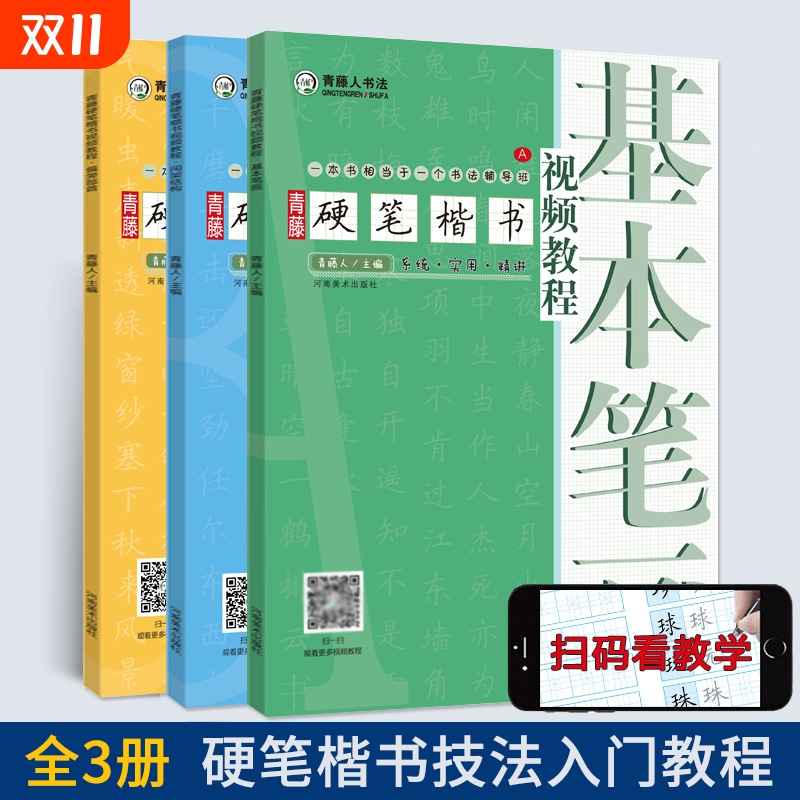 【单册可选】青藤硬笔楷书视频教程偏旁部首/间架结构/基本笔画中小