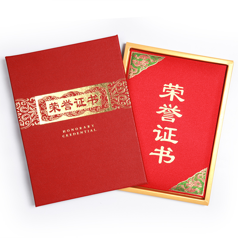 萨搏荣誉证书制作浮雕奖状纸定制做绸缎烫金封皮荣誉证书外壳内芯