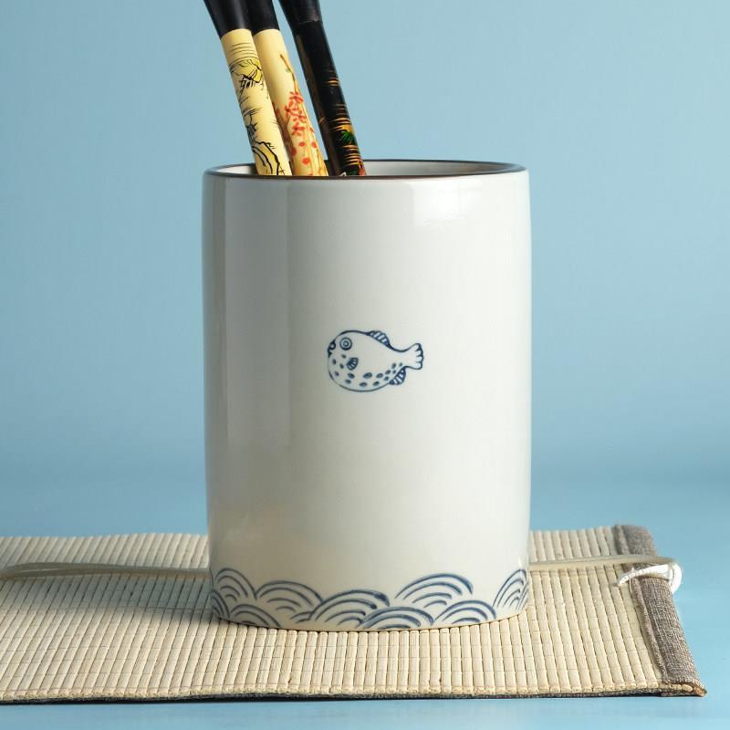 现货速发202陶瓷多功能笔筒办公桌面收纳桶毛笔收纳盒文房四宝用