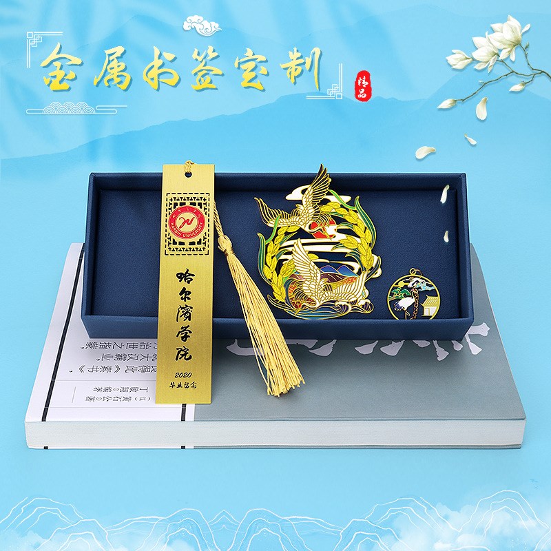 定做天鹅颈金属书签大学校徽名校校庆书签套国风学生商务LOGO定制