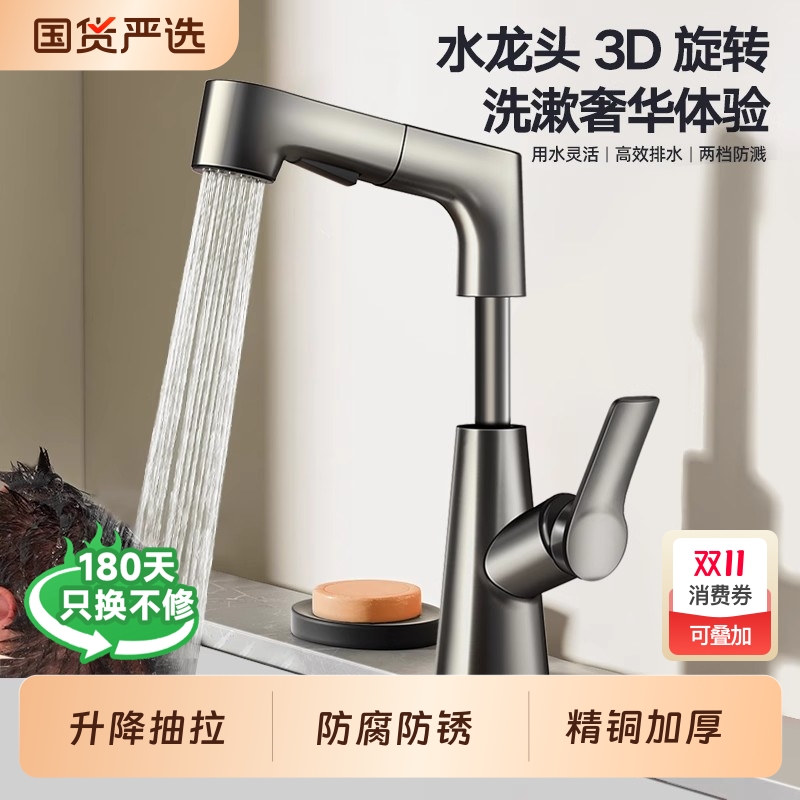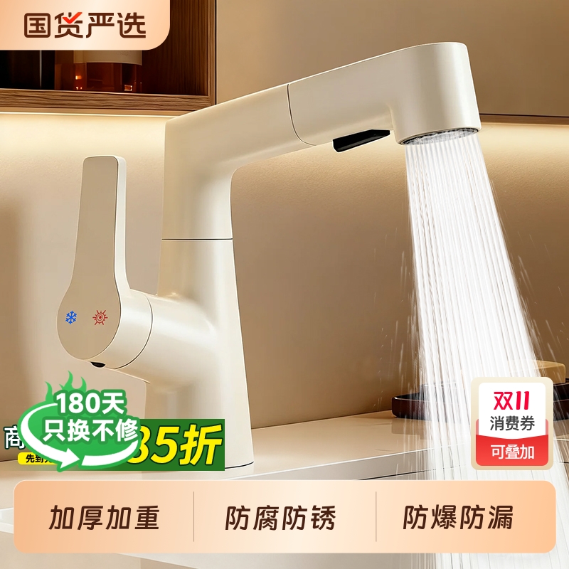 卫生间洗脸盆水龙头冷热抽拉式洗手盆面盆浴室柜洗漱台盆家用全铜