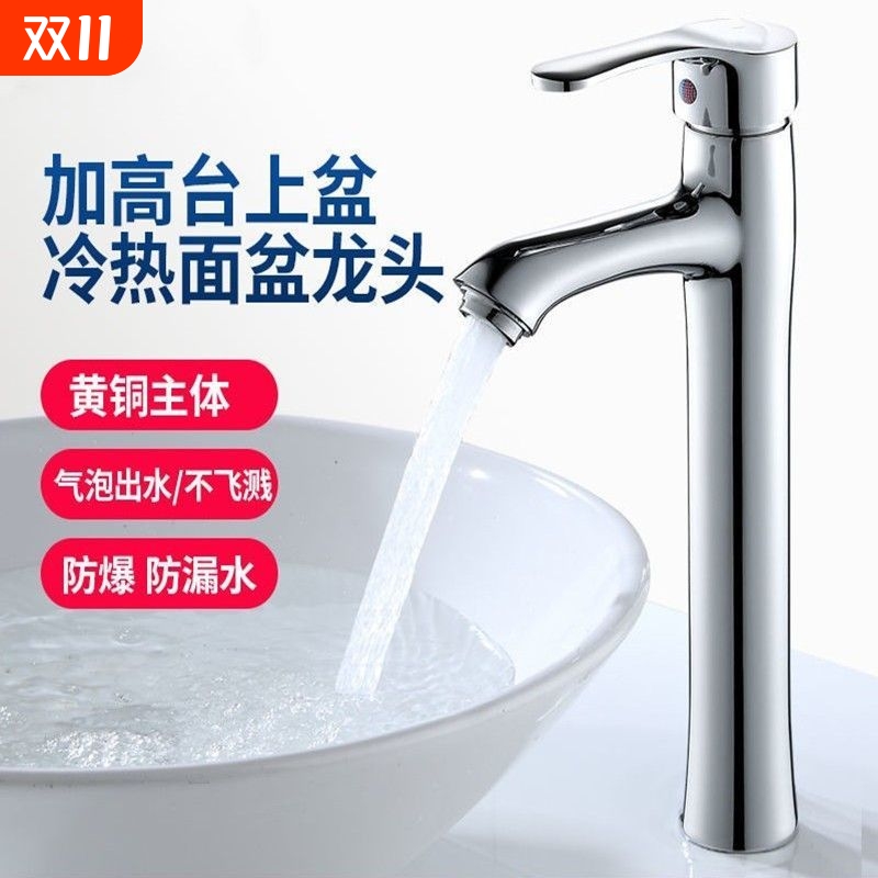 加高不锈钢单孔洗手盆水龙头卫生间冷热混水阀浴室柜面盆自动龙头