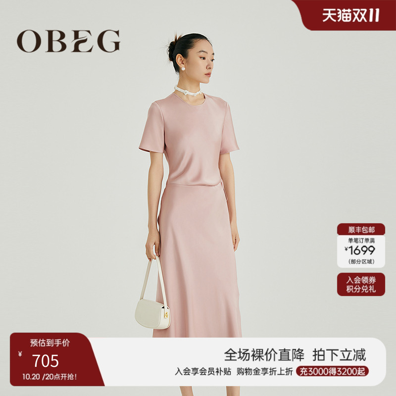 OBEG欧碧倩女性风系带缎面直身裙10481078