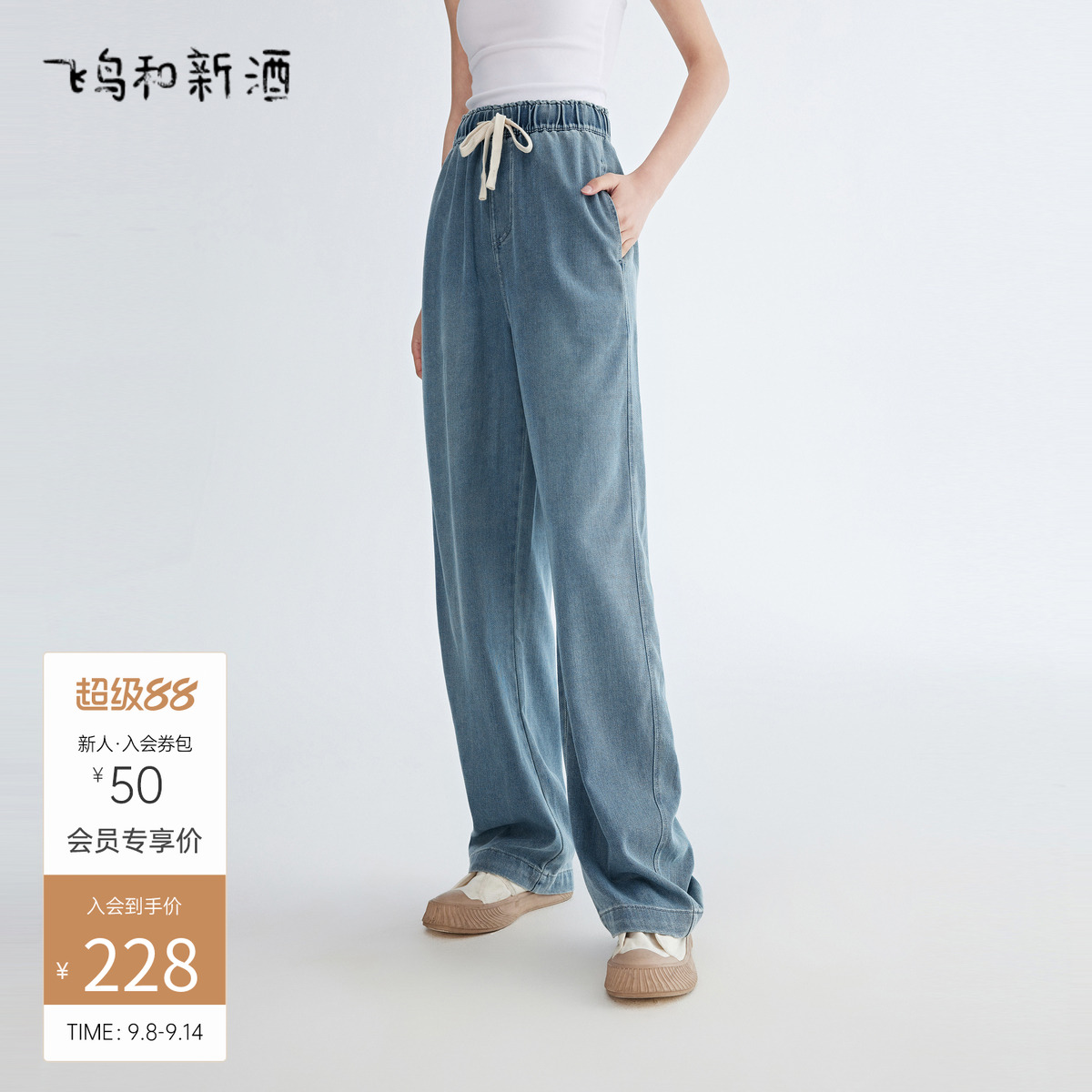 飞鸟和新酒系带薄款2025秋牛仔裤女时尚女装宽松显瘦休闲裤女裤