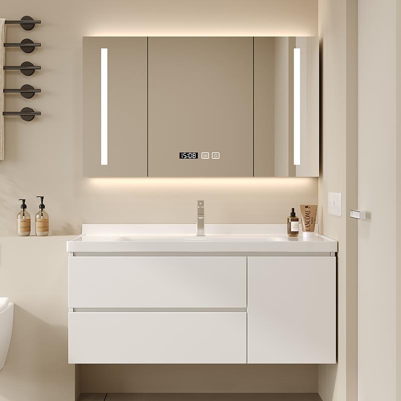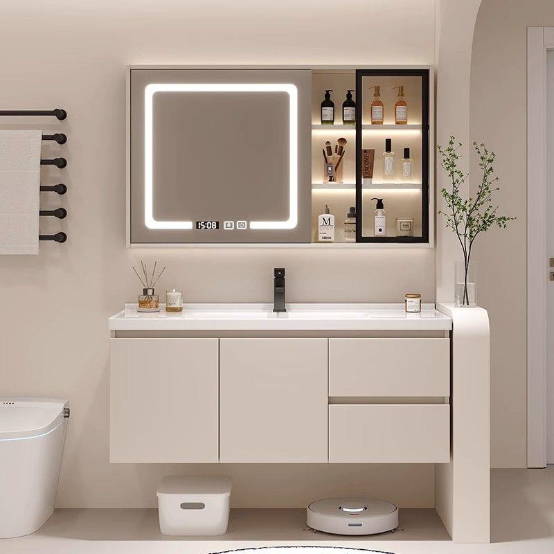 现代简约智能浴室柜组合陶瓷一体盆洗漱台奶油风实木洗手盆洗脸池饰品