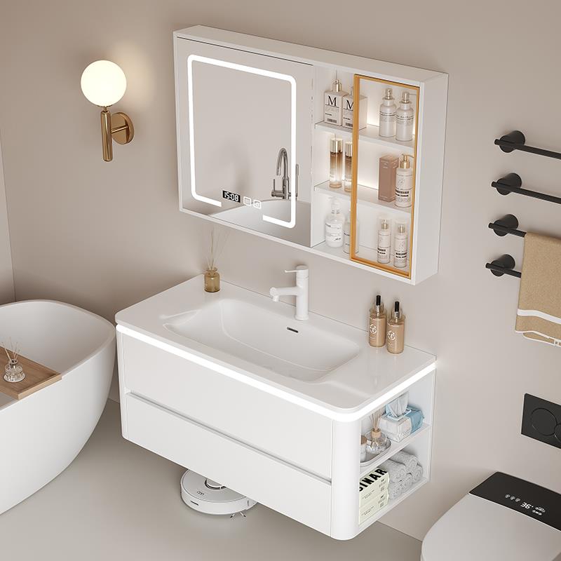 奶油风陶瓷一体盆智能浴室柜组合圆角洗手洗脸盆卫浴卫生间洗漱台饰品