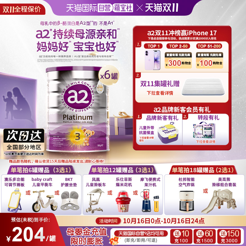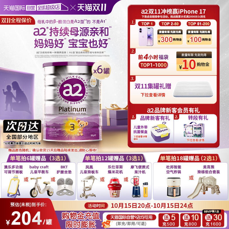 a2升级白金3段牛奶粉1-4岁6罐装