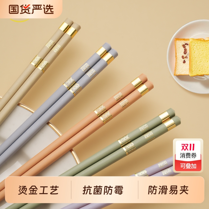 筷子家用合金筷子防霉耐温家庭厨房非实木防滑快子20双装酒店餐具