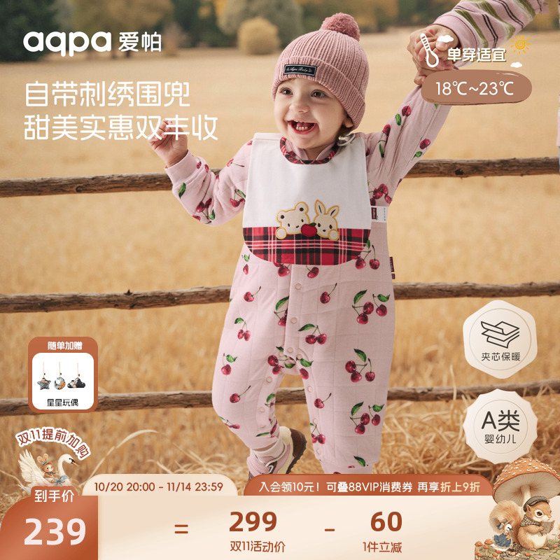 [樱之季节]aqpa爱帕夹棉婴儿连体衣秋冬保暖宝宝衣服外出服可爱