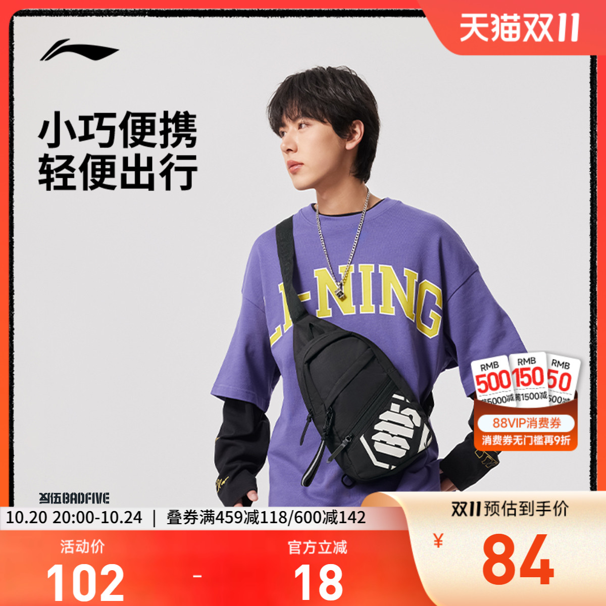 李宁男女同款胸包官方正品运动包