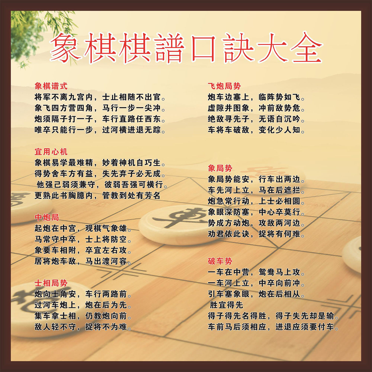 象棋棋谱口诀大全海报展板象棋谱式宜用心机飞炮局势墙贴纸KT板