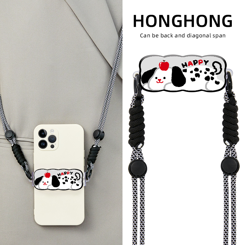 原创趴趴小斑点狗手机背夹适用苹果安卓通用手机防丢斜挎式可背女款带