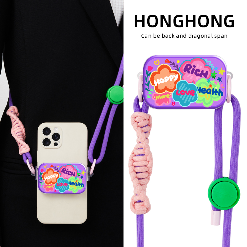 原创柿柿如意手机背夹斜挎式可背女款挂脖可调节背带适用苹果安卓手机