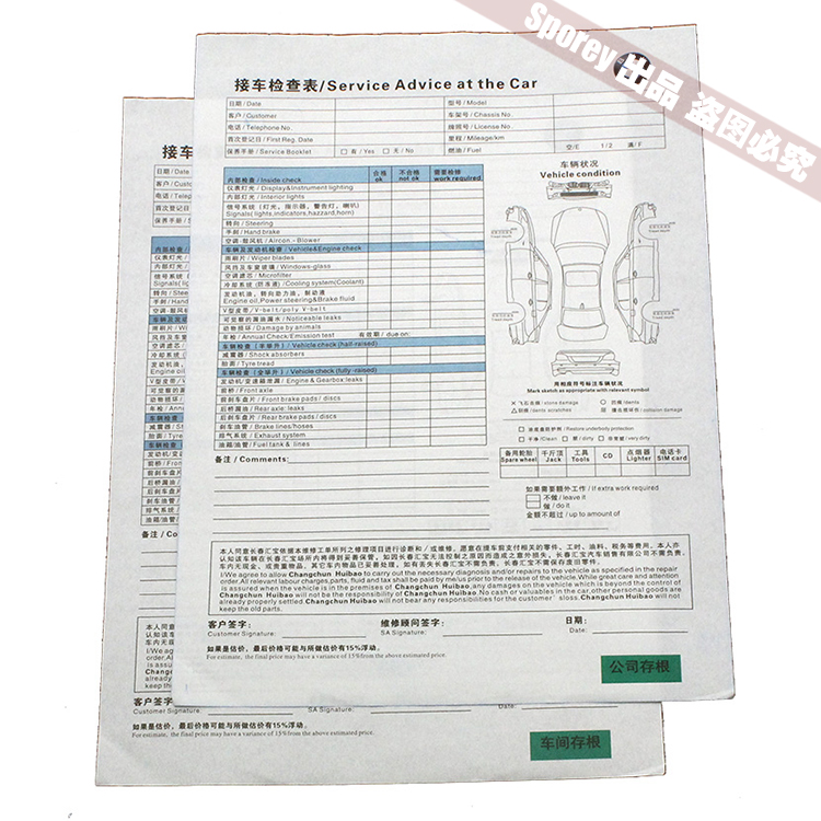 宝马 完工车辆最终检查清单表/救援服务实施确认单/售后试车单