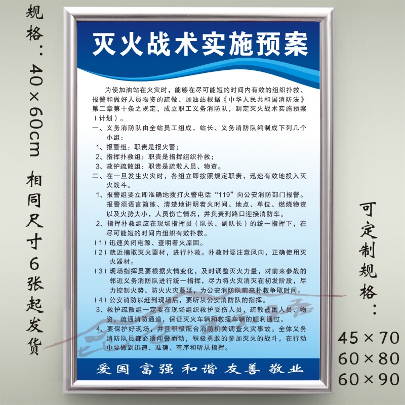 加油站灭火战术实施预案规章制度牌广告牌警示牌提示牌展板标语
