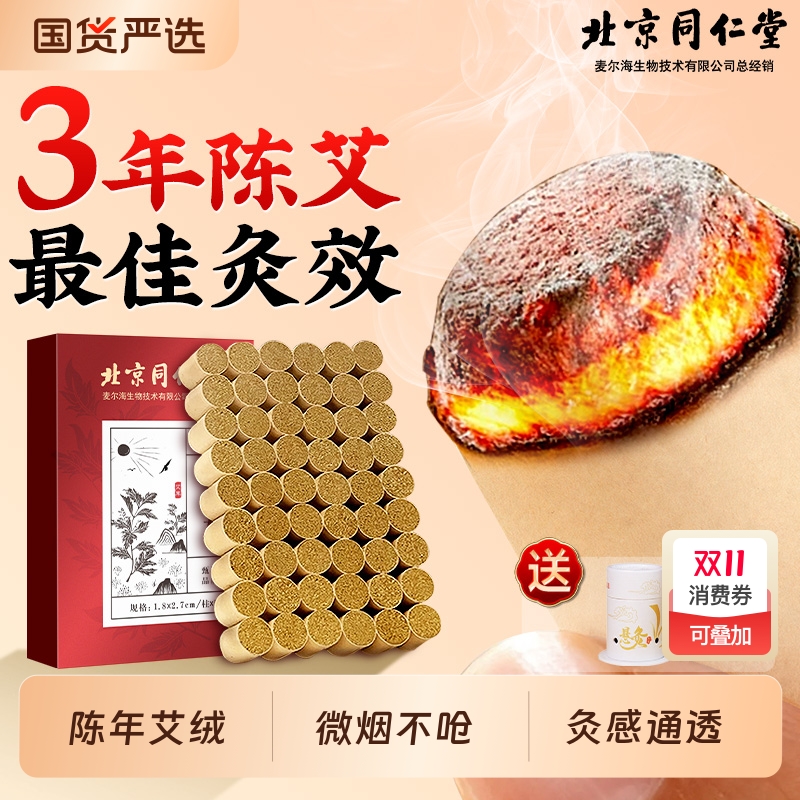 艾灸纯艾绒艾柱艾条十年家用54粒艾草柱三年陈石磨手工野生陈年