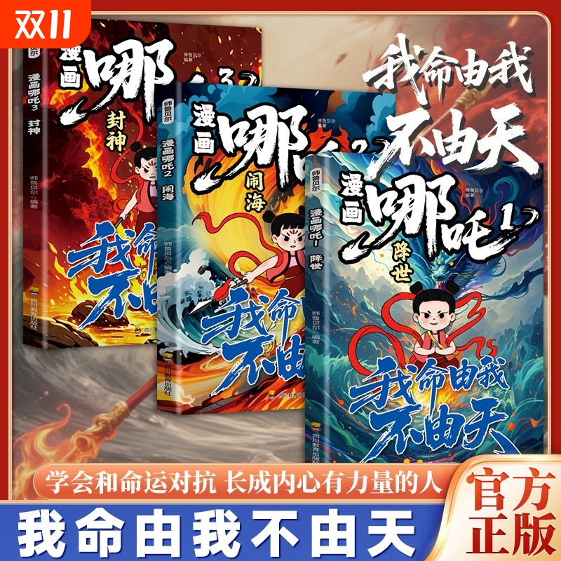 正版哪吒漫画系列全三册哪吒降世 闹海 封神全彩手绘热血燃魂反抗与