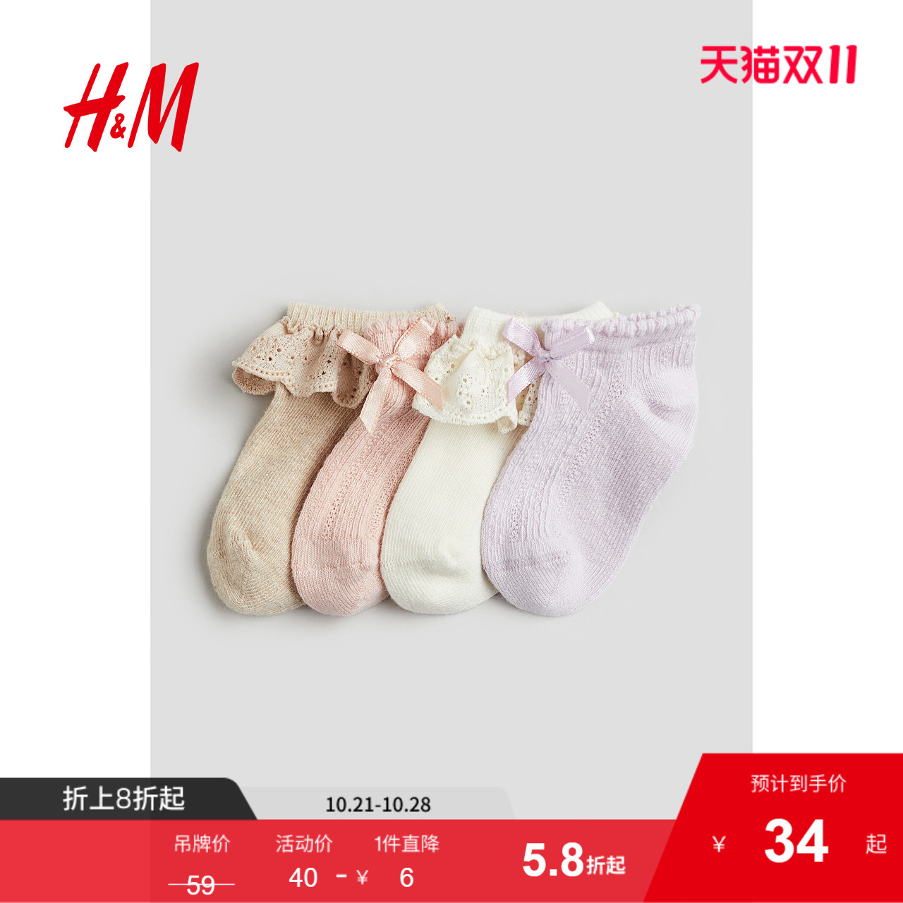 HM2025秋季新款童装女婴4对装无筒袜1216054