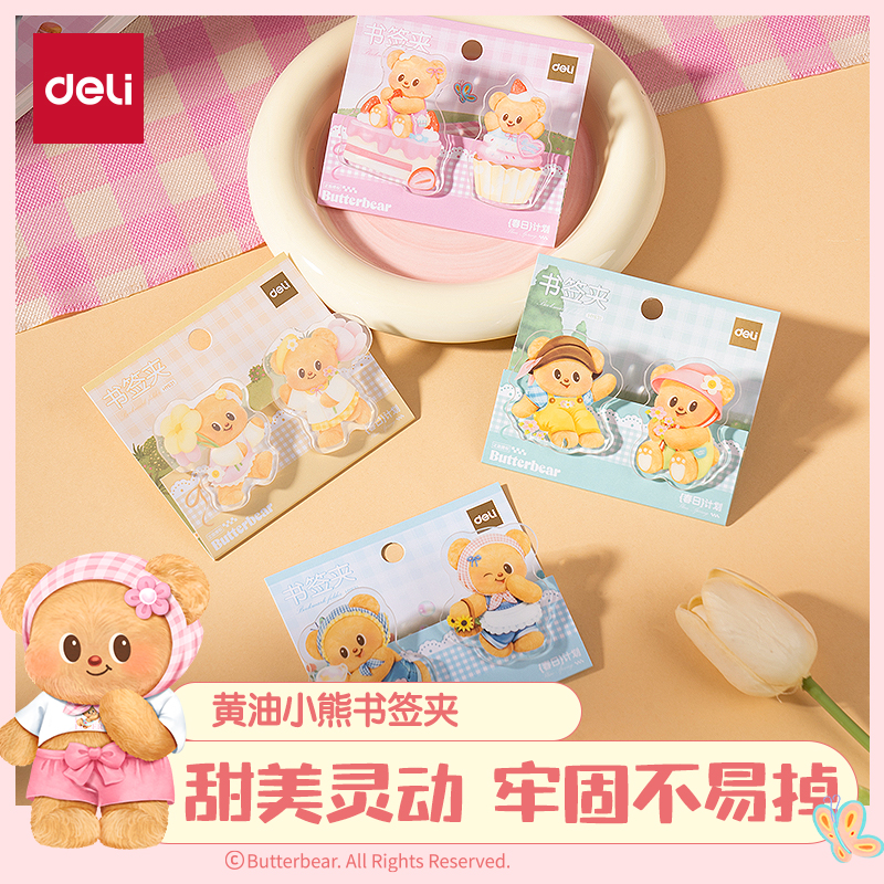 得力黄油小熊联名对装书签夹万能夹透明小夹子文具创意资料夹初高中试
