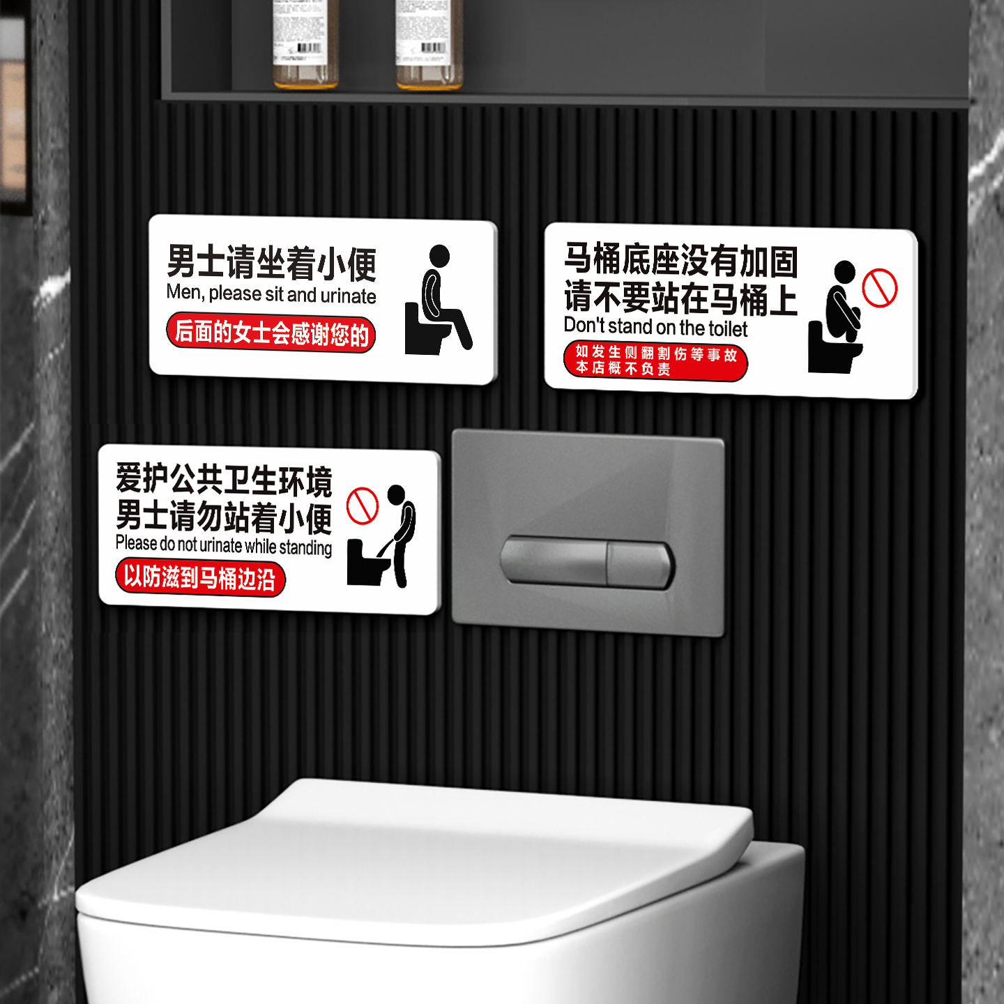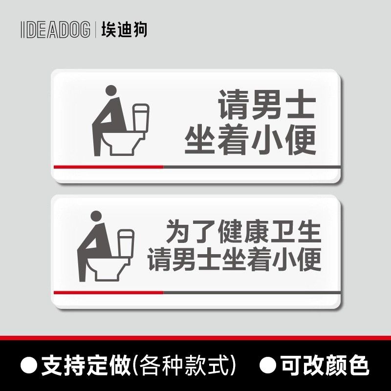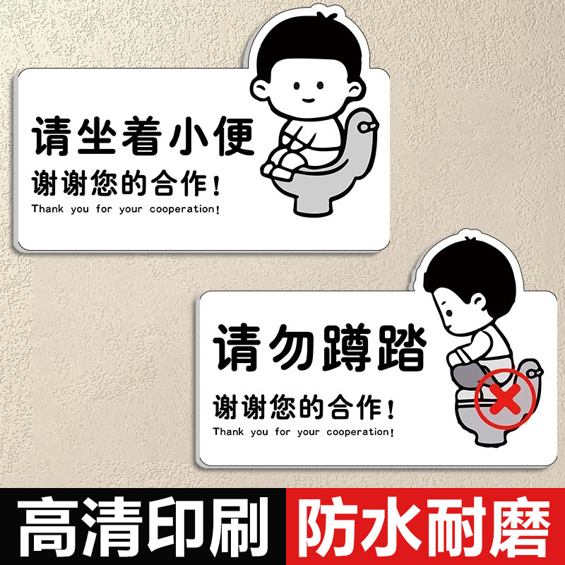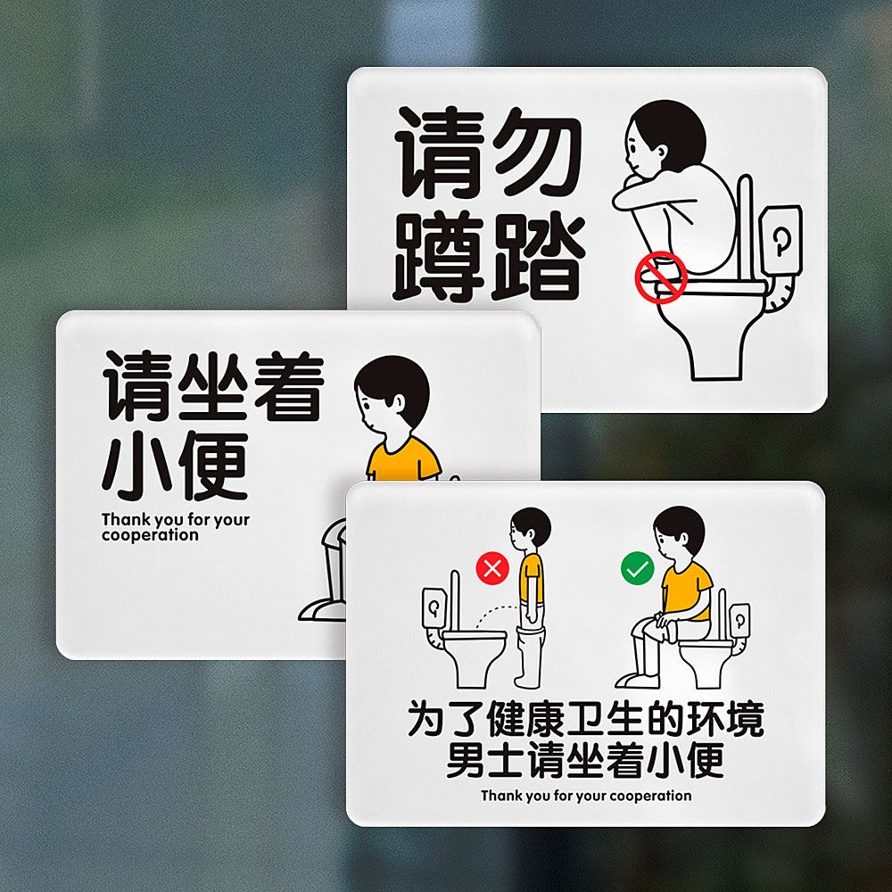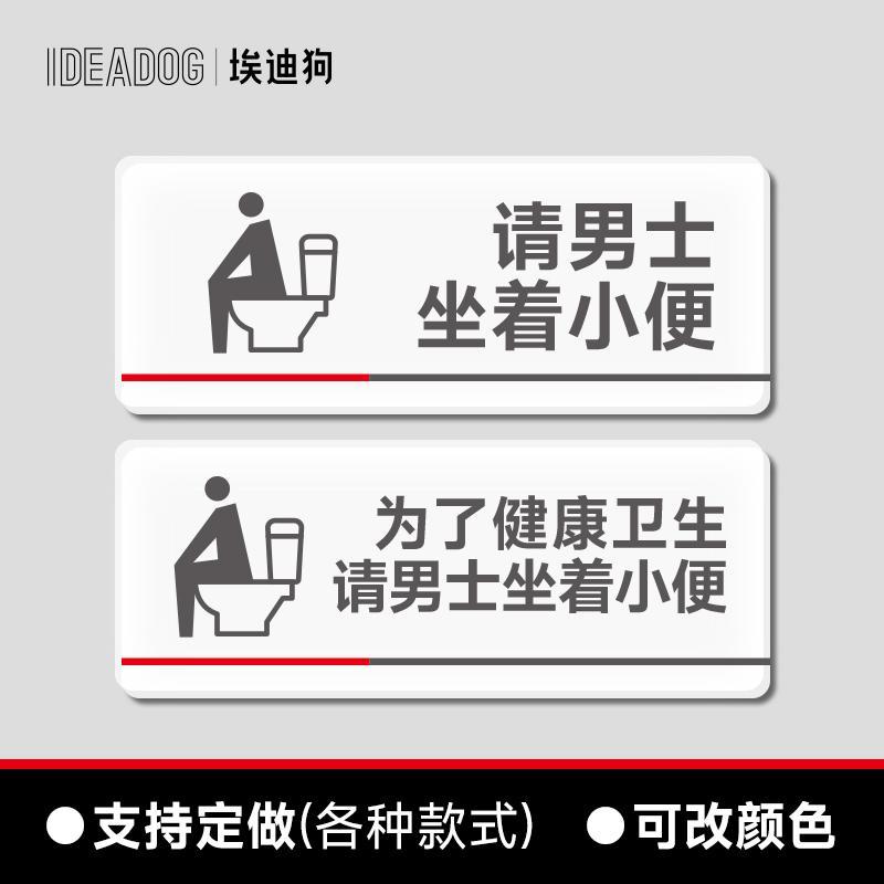请男生坐着尿尿提示牌请坐着小便亚克力贴纸商场卫生间洗手间请勿蹲踏