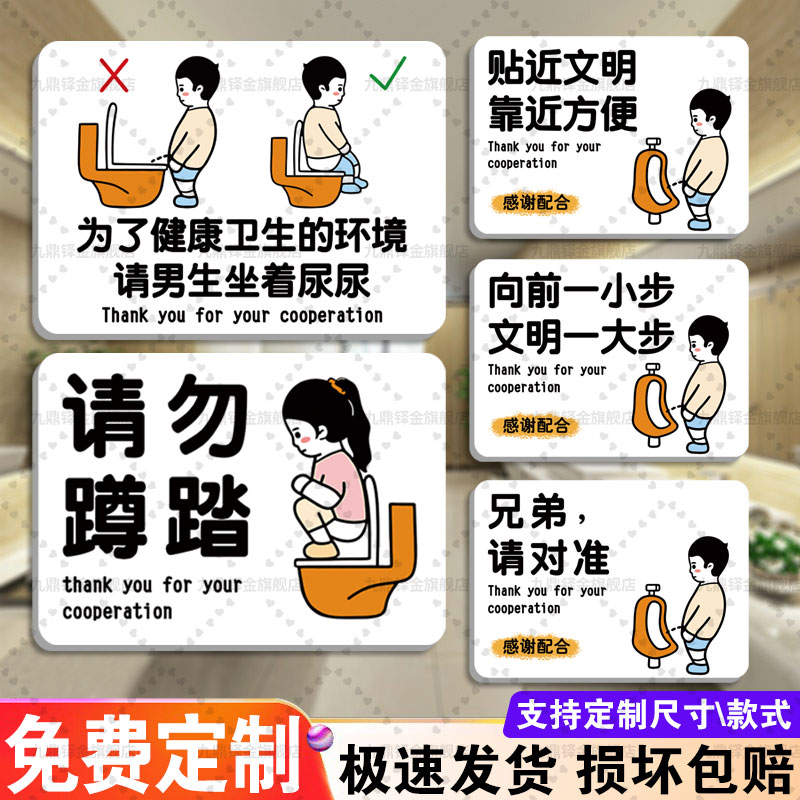请男生坐着尿尿提示牌请坐着小便贴纸卫生间请勿蹲踏马桶文明提示门贴