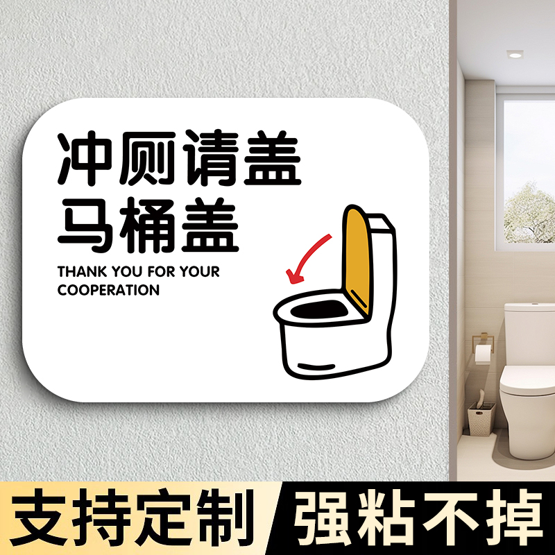 坐着尿尿贴纸盖上盖子冲马桶标识牌盖马桶盖提示牌智能马桶提示贴男女