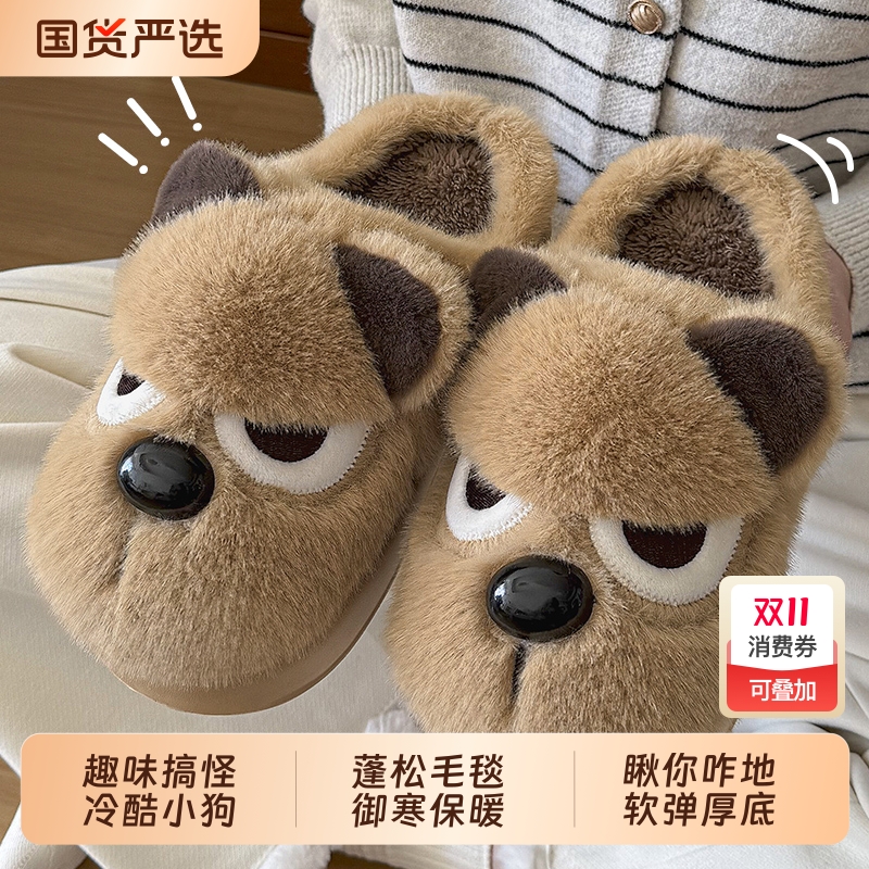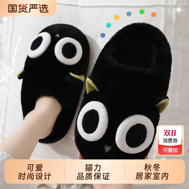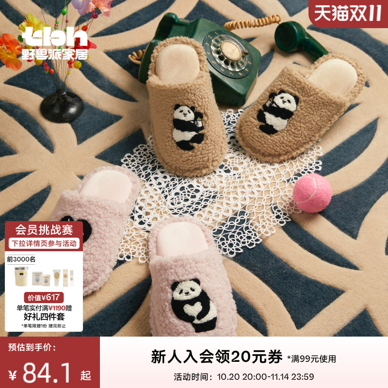 tbh野兽派家居明星同款熊猫毛绒拖鞋室内鞋子家用情侣居家鞋*