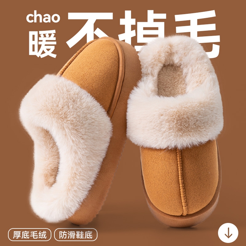 2025年新款麂皮绒棉拖鞋女秋冬室内居家用厚底网红保暖毛毛棉拖鞋
