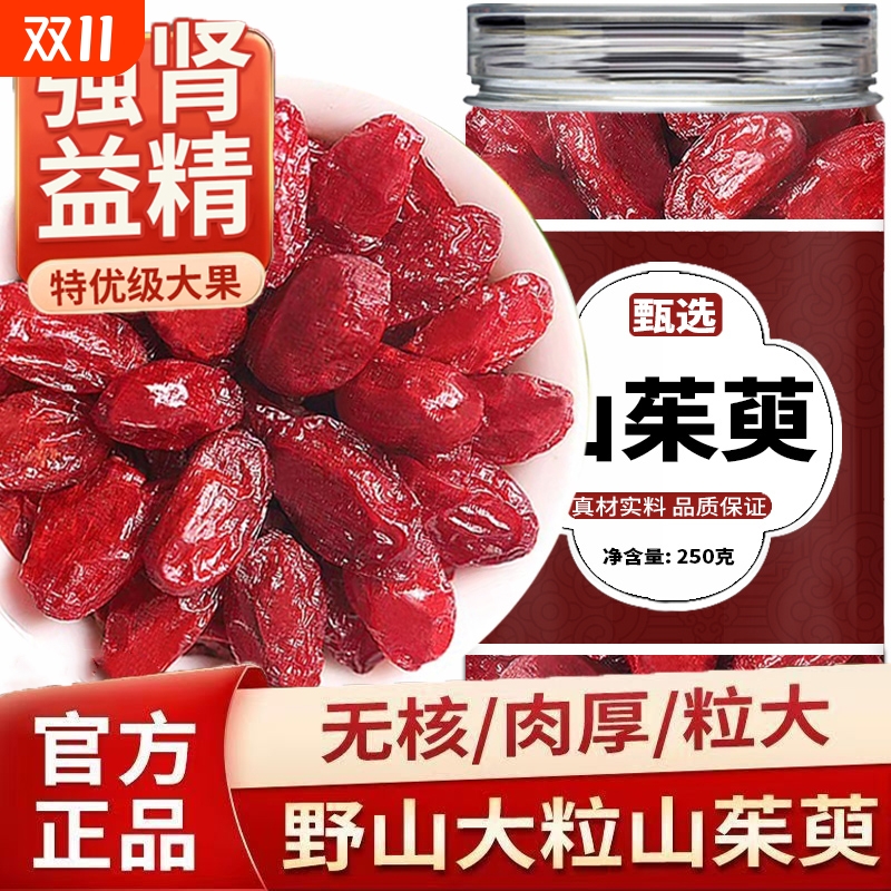 精选野生山茱萸山萸肉中药材正品官方旗舰店无核去核枣皮泡茶水喝