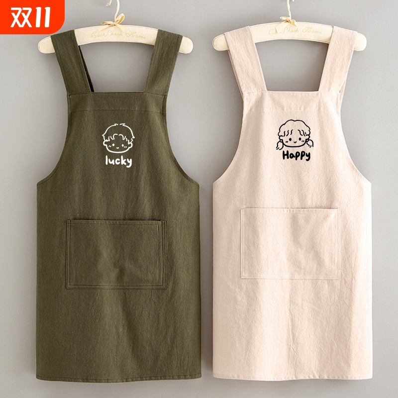 日系棉麻做饭围裙防污耐脏围腰厨房家用透气女情侣餐饮上班工作服