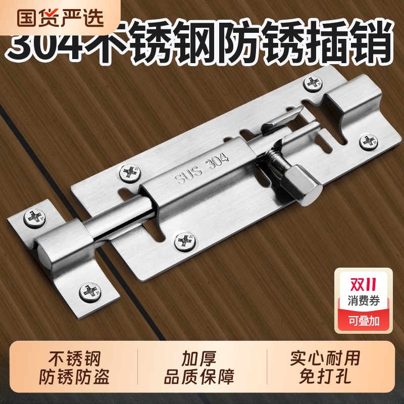 304不锈钢插销门锁扣木门窗卫生间防盗加厚门栓门扣明装插销左右