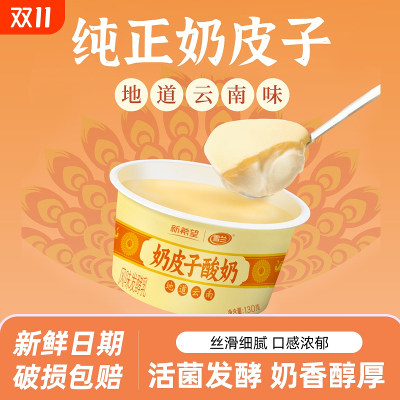 顺丰发货 新希望雪兰奶皮子酸奶130g*12杯泡沫箱装云南经典老