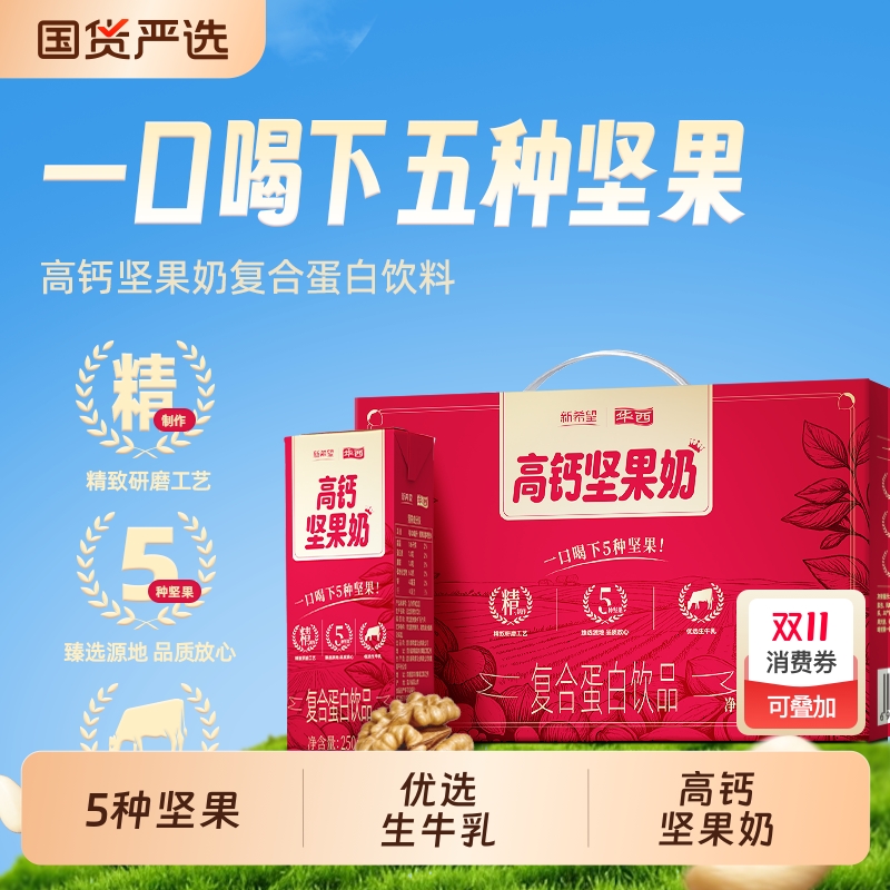 7月新产 新希望华西高钙坚果奶250ml*12盒风味牛奶调制乳含