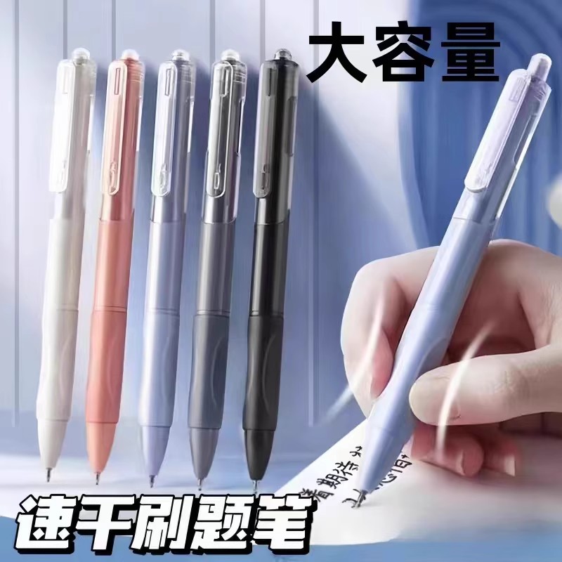 莫兰迪刷题笔桶装小白笔速干ins日系黑笔ST笔尖按动中性笔学生考