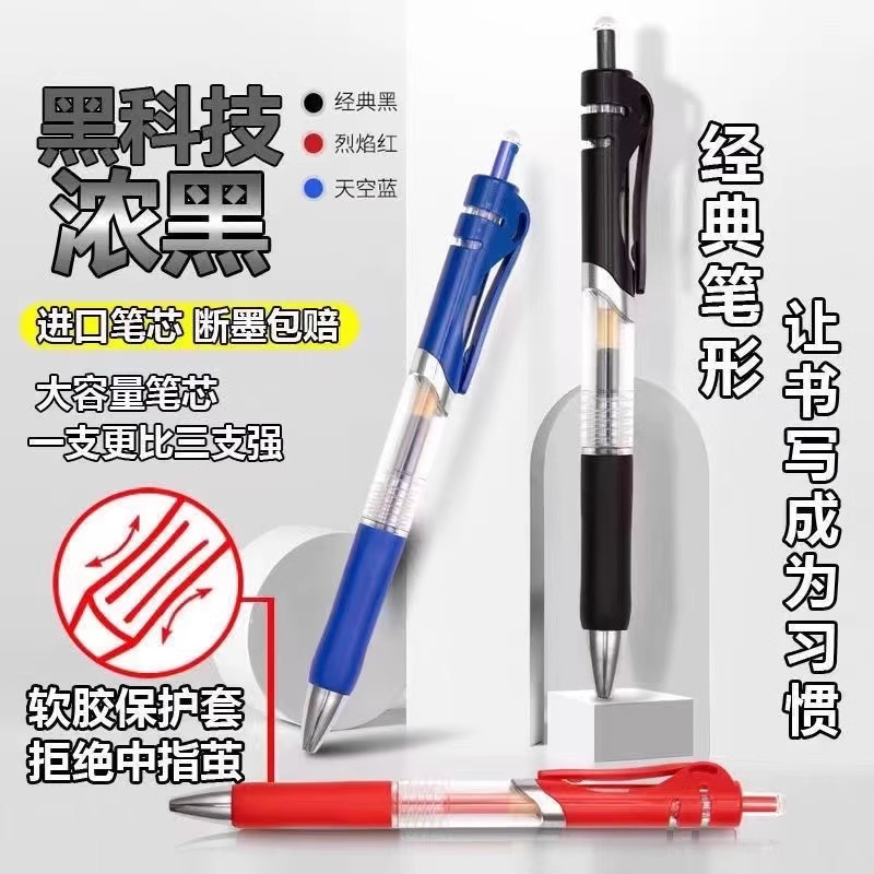 中性笔居家办公用签字笔黑色碳素笔学生考试用水性笔红蓝水笔子