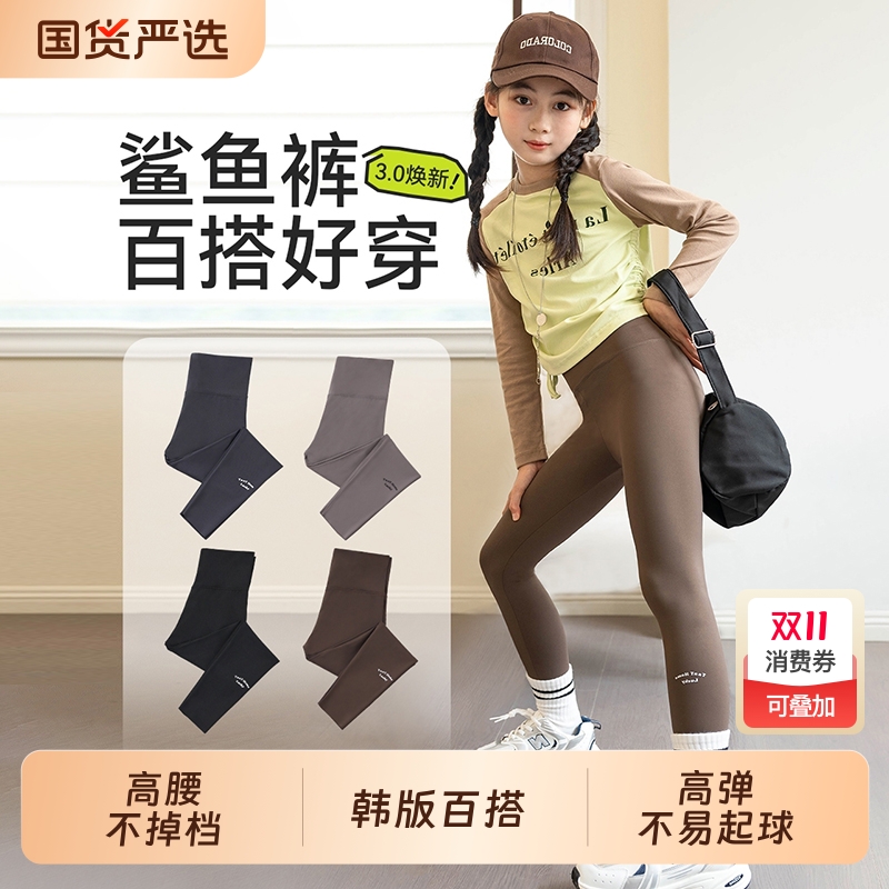 女童鲨鱼裤春秋常规高弹修身瑜伽裤中大童运动裤子外穿儿童打底裤