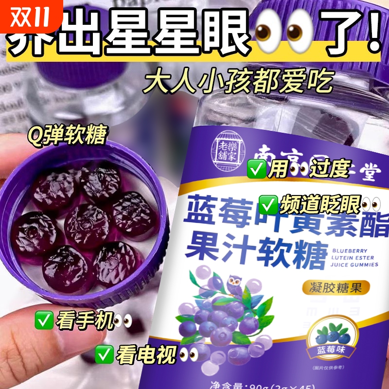 南京同仁堂蓝莓叶黄素脂软糖学生儿童改善视力缓解疲劳近视眼干涩