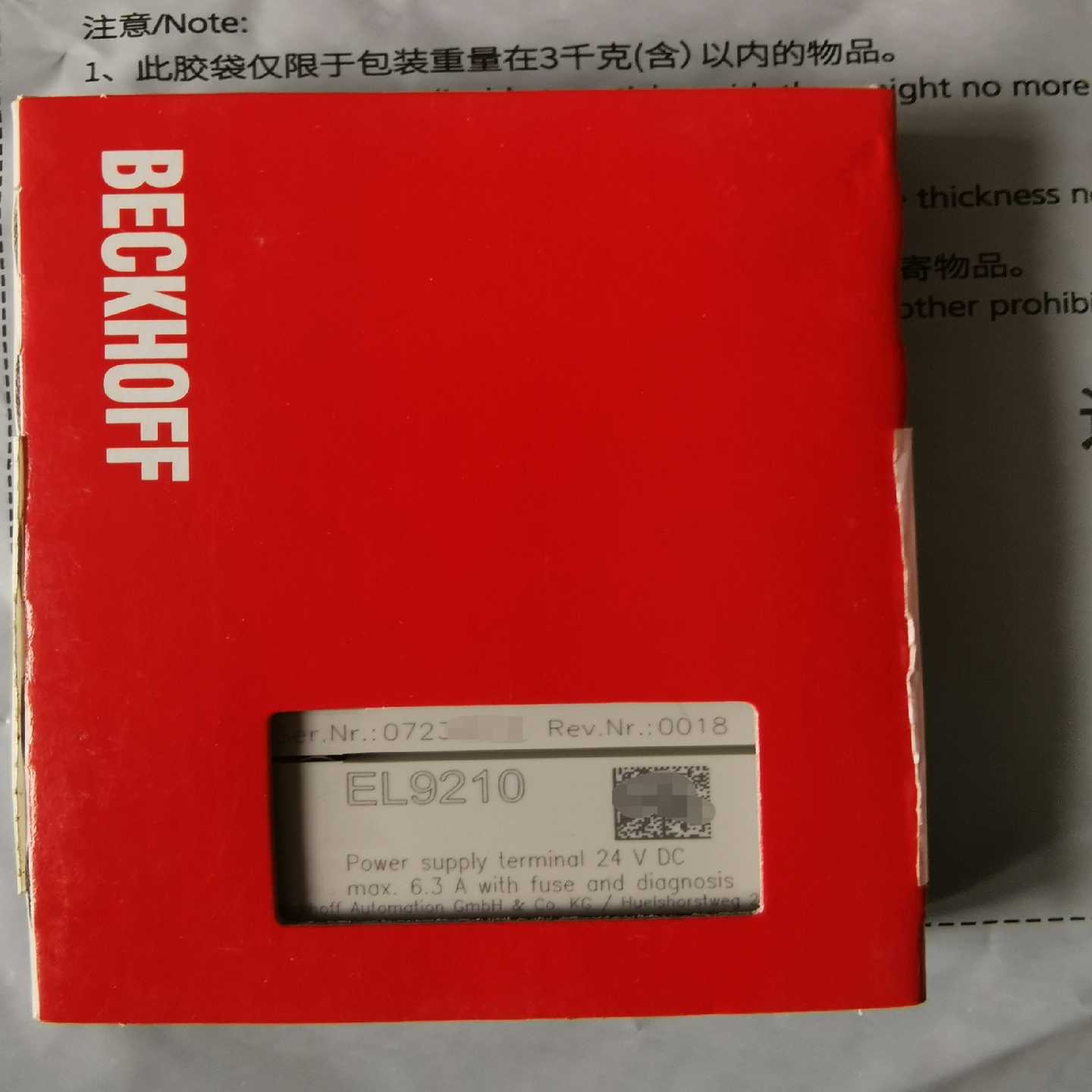 倍福EL9210模块,未拆23年的货,顺丰。(佳毅工控)