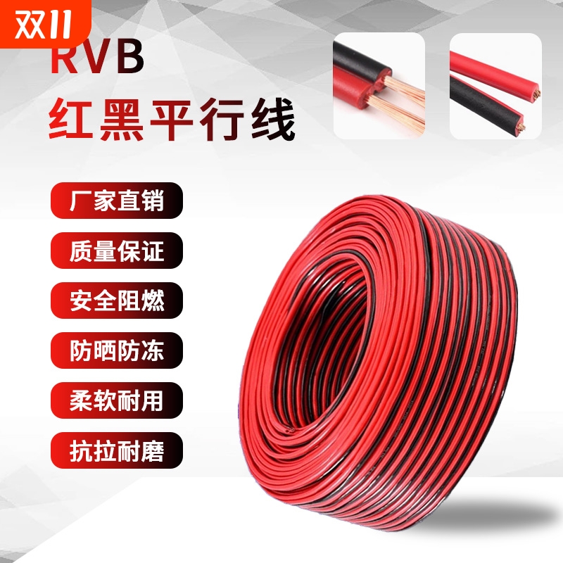 国标红黑双并线RVB2芯.0.52.5平方平行线LED灯线音响线