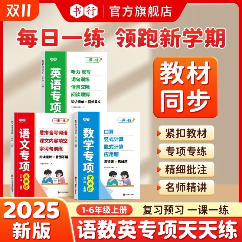 小学生语文数学英语专项天天练 一二三四五六年级上下册同步教材一课