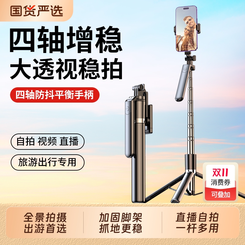 四轴增稳2025新款自拍杆落地三脚架手机拍照神器直播支架旅游便携