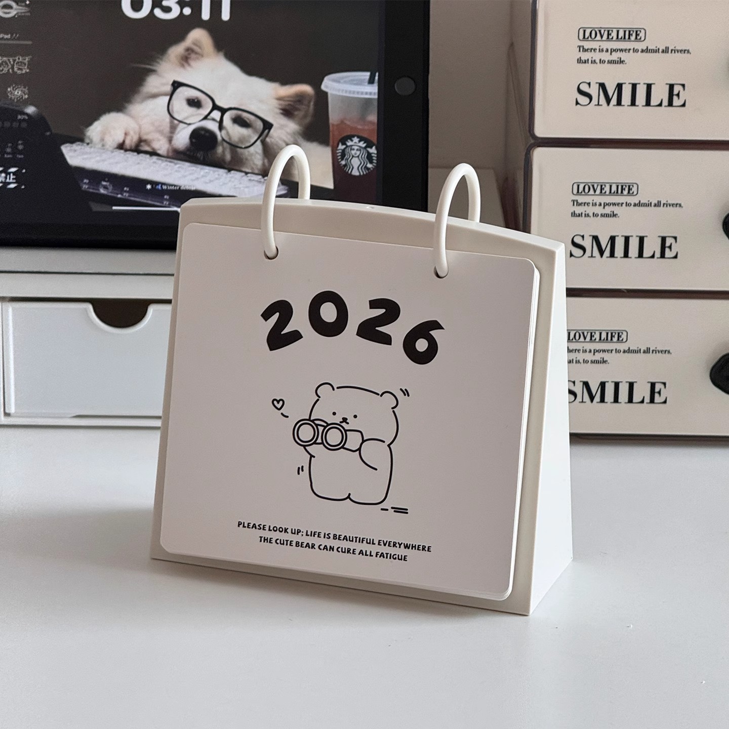 可爱小熊台历2025年到2026年新款日历本创意简约桌面摆件蛇年