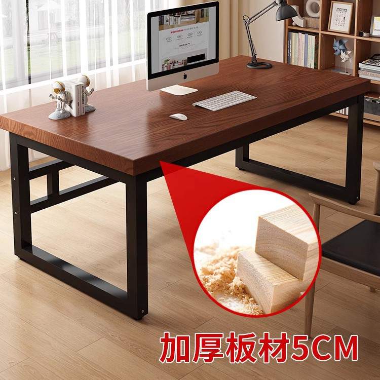 实木书桌简约现代家用办公长条电脑桌台式铁艺学习桌子双人工作台
