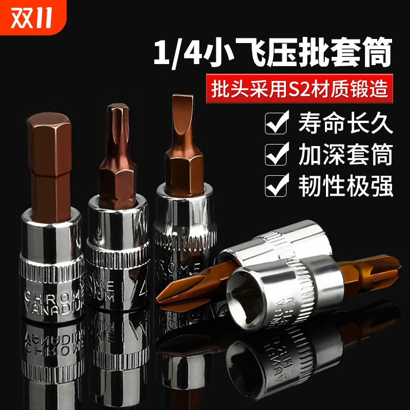 1/4小飞套筒内六角批头六花十字米梅花小快速6.3棘轮扳手螺丝工